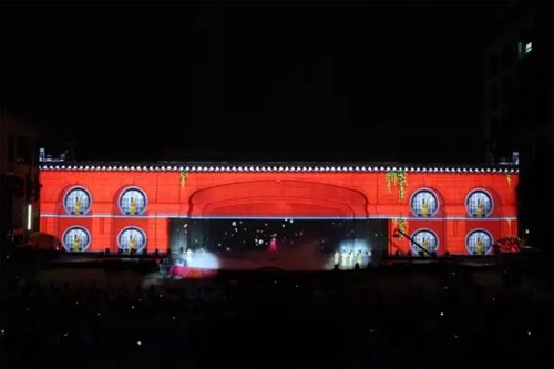海上丝绸之路2000余年的文化传承和历史积淀,孕育出众多广为流传的文化瑰宝。配合着以55米宽,14米高楼体为“幕布”的3D裸眼投影秀,现场观众欣赏了精彩绝伦的琵琶弹奏、歌曲演唱、芭蕾等节目,尽享科技与艺术、现代与传统的完美结合。这是是中国首次舞台墙体投影和灯光合为一体文艺晚会,也是自2014年以来上海首次举行大面积墙体投影灯光秀。