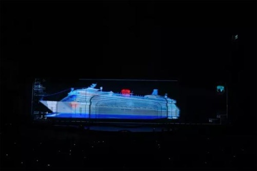 在提倡“勤俭办演”的前提下,既要充分以技术创新营造以往人海战术和大型道具的绚丽视觉效果,又要能完美呈现为“一带一路”大背景下的邮轮文化所精心创作的表现内容,让更多市民体会到邮轮旅游的乐趣,并非一件易事。而胜任这一艰巨任务的除了现场导演和总包团队,还有来自视觉影像专家——巴可的9台投影机(5台26,000流明HDF-W26投影机和4台30,000流明HDF-W30 FLEX投影机)。