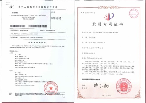 齐普光电的小间距产品在上个月一下拿到了3个国家级发明专利和1个认证:
