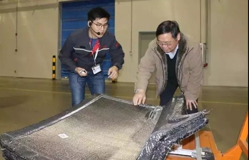 2018年1月16日,四川腾盾科技有限公司(以下简称“腾盾科技”)总工程师戴亚隆、副总经理曾联俊、项目总设计师顾伟、结构专业总设计师黎观生、强度专业总设计师郭家平等领导一行到访廊坊,参观考察了中安信科技有限公司的碳纤维科技展厅、碳纤维生产线和康得复合材料有限责任公司(以下简称“康得复材”)碳纤维复合材料4.0版智能制造工厂。
