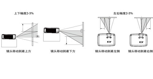 采用光学变焦镜头,使投影机在短距离投影的同时实现1.05倍变焦与2%~3%的垂直水平位移,调试与使用更方便。
