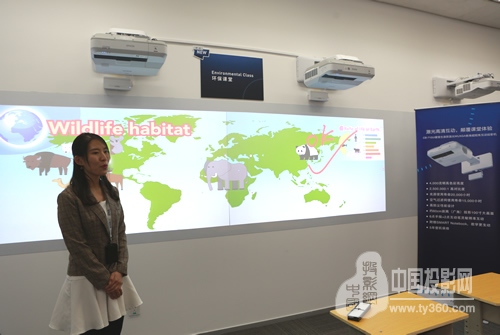 爱普生工作人员为参会媒体演示爱普生双屏互动教育投影机