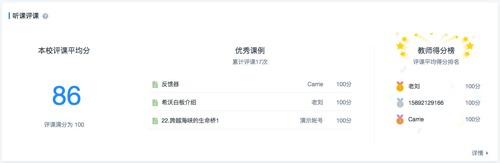 而这也将改变以往管理者只能对老师进行结果性评价的现状,通过过程数据的采集,为老师提供有过程细节、有改进方向的发展性评价。