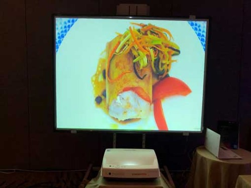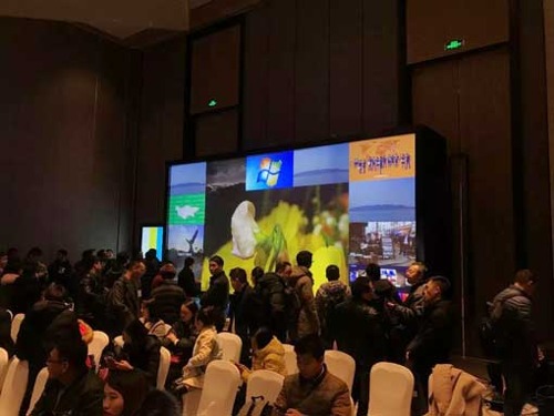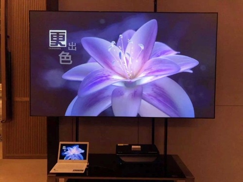 光峰所展示的这套4K激光大屏,采用全球唯一的超大散射背投屏技术,极大的可视视角(水平178°,垂直178°),高分辨率高对比度,真实还原色彩和生动文本图像的动态视觉效果,灵活多变的安装形式,快捷免维护,节约大范围安装空间,画面尺寸不受限制,大面积安装优势明显,同时在异形显示时亦灵活实现。