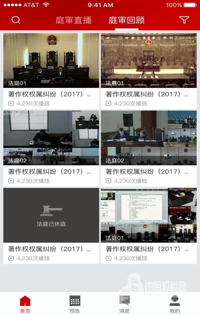 点播回顾:客户端可对已审结且已授权案件进行点播回顾,订阅信息,不用担心错过直播