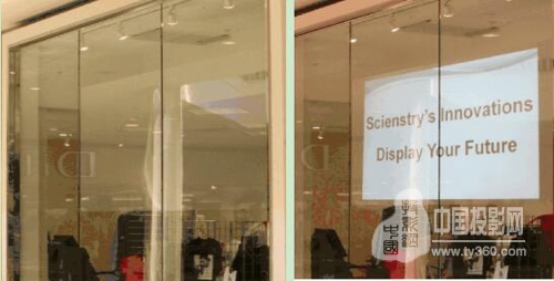 橱窗投影方案中用户看不到大幅白色投影幕,而是通过透明投影膜代替,投影膜能够与日常生活中常见的汽车车窗、玻璃窗、展示柜等透明载体相结合,从而将这些载体转换成具有不俗显示效果的透明投影屏幕,加之投影机投射的精彩画面,在几乎不打破原有装饰格局的基础上巧妙的完成多媒体升级。