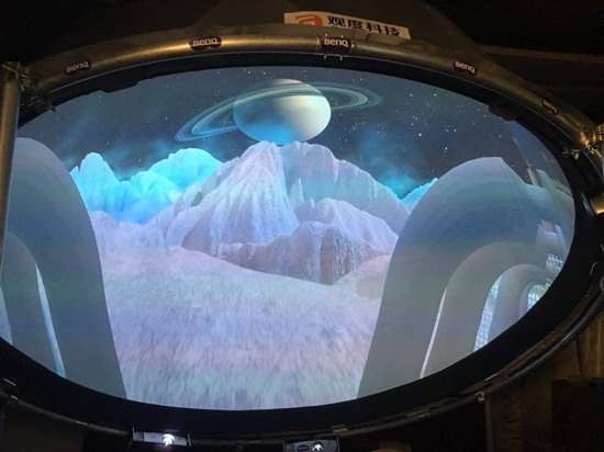 球幕投影常用于机场和企事业开幕式中,科技场馆也经常出现它的身影。为方便观看者查阅,球幕投影对于显示清晰度的要求较高,明基4K激光投影机恰好满足了这一重点需求。