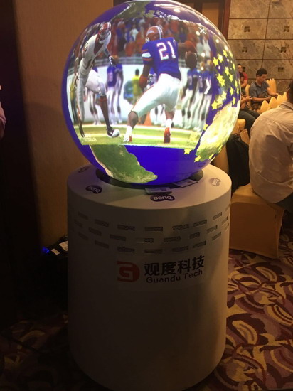 你也许见过球幕投影,但4K超高清显示的逼真球幕很少有机会见到。明基采用分辨率高达3840*2160的LK952明基激光4K工程投影机,搭配鱼眼镜头和箱体架造型,通过投影融合与直径0.8米的球状幕布精准贴合,达成无缝显示的球幕投影。并且,球幕尺寸可以按客户需求来定制,与触控系统相互联动,加深方案延展性,下次用在更大尺寸画面上也能精细依旧。
