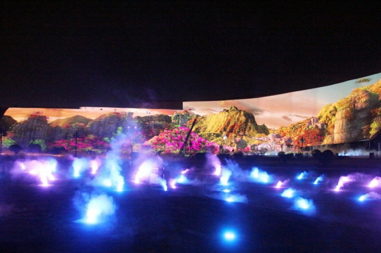 此外,巨大的投影画布对投影画面的色彩和画质要求很高。光影秀中大量采用大红底色给色彩校准带来很大挑战。