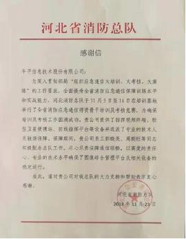 培训圆满结束后,各总队对华平的技术支持给予了认可,河北和山东等消防总队发来感谢信,对华平在培训中提供的大力支持和帮助表示感谢。