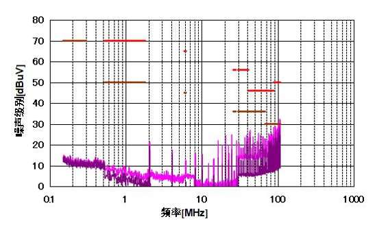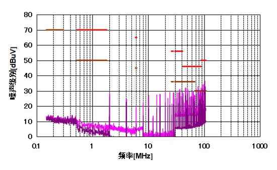 图 8:采用差模和共模滤波器的I型布局的EMI性能