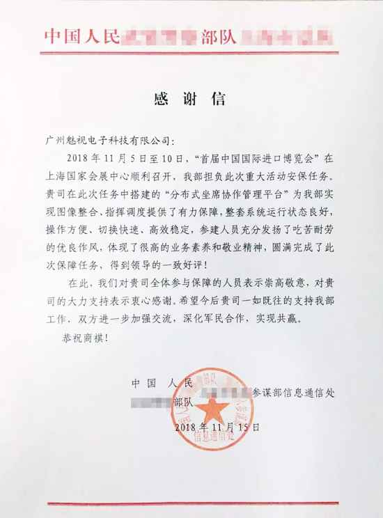 作为安保指控一体化系统与作战指挥中心整体解决方案的前沿技术赢领者——AVCiT魅视,又双叒一次参与国家级大型盛会活动的安保建设工作并发挥积极作用,全程助力WJ某部实力护航『首届中国国际进口博览会』圆满成功举办!