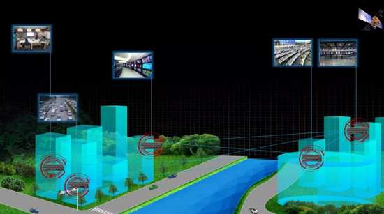 面对展馆中心核心区域及周边辐射区域监控设备,基于IP技术完美支持多种类型监控摄像信号的直接接入,实现安保部门单位对会馆中心核心区域及其周边辐射区域,监控布局所到之处交通管控、人流分布等动态信息的上屏共享,为信息的研判提供可视化支持,实现统一监控调度和应急指挥。