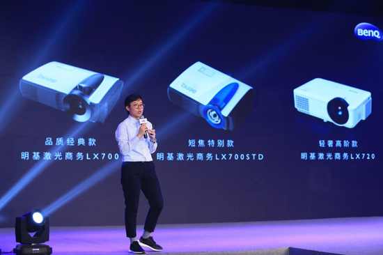明基中国产品研发中心高级经理张雅婷指出,”新光源带来对比度和色彩显示上的表现优势,同时寿命长达20000小时,免去灯泡更换的人力物力成本,防尘性能再升级,再带上相对亲民的价格,是我们专为企业用户量身打造的全新系列产品”,三款新品分别是3000流明短焦LX700STD、3000流明长焦LX700以及 4000流明的LX720,从基本参数上看,首批激光商务产品可满足主流会议室的亮度需求。