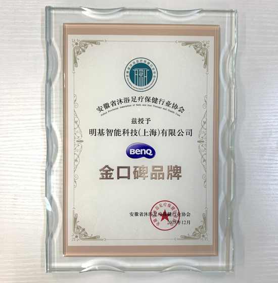 11月19日,安徽省沐浴足疗保健协会主办的2018年度会员大会暨企业家高峰论坛在安徽芜湖隆重举行。本次盛会邀请了全国知名行业专家、政府相关领导、企业掌门人、行业培训机构代表等共计四百余人到场,不仅就中国沐足行业转型发展之道进行了探讨,更针对道行业相关配套产品品牌进行了评选,专业投影品牌明基BenQ凭借影院投影产品优秀的画质表现、可靠的产品品质和高效的售后服务,被协会正式授予金口碑品牌奖。