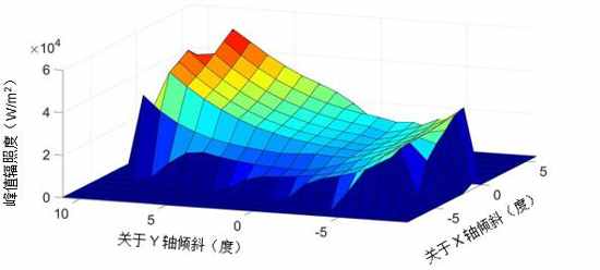 图 2:散射屏上的峰值辐照度作为输入阳光角度的函数