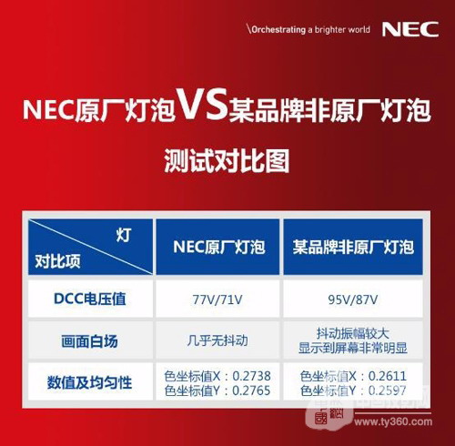 下面,小N通过3组实际测试对比,让大家一目了然地看清楚NEC原厂灯泡和非原厂灯泡的详细区别。