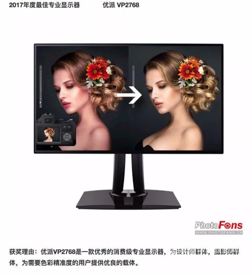在佳友在线评选的2017年度科技产品中,ViewSonic优派VP系列27英寸2K显示器VP2768,凭借其硬件校准、100%sRGB色彩表现及时尚微边框的外观设计,荣膺佳友在线网颁布的“最佳专业显示器”奖。 VP2768为设计师和摄影师等群体提供优良载体。此外,优派PX725HD家庭娱乐投影机同样凭借其1080P高画质分辨率搭载六倍速RGBRGB 色轮、SuperColorTM配合Rec.709及3X Fast Input响应功能,荣膺年度“最佳投影机”奖。