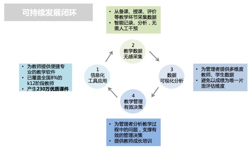 促进师生共同全面发展,这个学校的核心工作很少被关注到,或者常常是从结果上去设计产品和应用,比如学生成绩分析的应用方案,比如学生的健康体检应用方案等等。