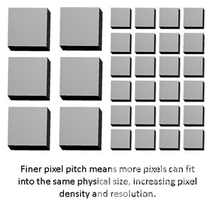 ●较小的像素间距代表较高的像素密度和较高的分辨率