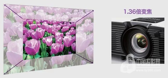 理光PJ HD5900投影机搭配短焦变焦设计,配置了缩放率高达1.36倍的镜头。可以在不挪动机器的情况下、根据房间的大小选择最适宜的投射范围。