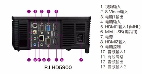 投影机分辨率是指一幅图像所含的像素数目,像素数目越多分辨率越高,显示的图形细节更丰富,使画面更完美。PJ HD5900采用DMD芯片、投射1920×1080的高分辨率,从而可以获得更有宽度地,不卷曲地高品质影像。不论是商务会议、教学应用,还是工程上的多样使用,都能出色的提供全新视觉享受。简单的镜头不简单