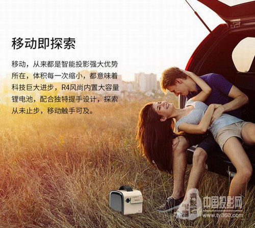 其实,智能微投相对传统电视拥有巨大的优势,便携就是其中之一,但仅仅是便携仍然不足以打动消费者,如果能够做到移动投影,才是真的解决了用户的痛点。这一次,R4风尚加入了超大容量(20000mAh)锂电池,只为带来可持续续航的功能,续航时间最高可达2小时,完全足够看一部电影或一场比赛,让你在没有电源的旅途中也能享受到投影的乐趣,不得不说,R4风尚是一款旅行必备的神器。
