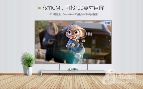 1、投射比达到0.2:1物理极限,处于业内领先地位,放置在家庭客厅电视柜上,便可满足超大画幅投射距离要求;