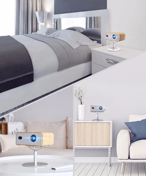 神画Q1区别于厚重金属风的智能投影,采用了原木质工艺+布艺的创新设计,重新定义了投影的新潮流。这一股清新简约风让人赏心悦目,放在家里的任何一处都能自成一道风景。
