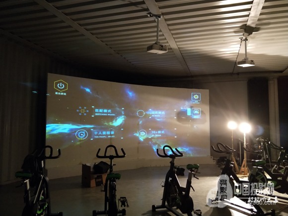 七七健身房,除基本设施构建外,通过2台DM350X短焦投影机(考虑运动者视线不被投影光线刺眼,保持动感单车室内>7h使用),搭配迪硕-DK517进行边缘融合,配合单车软件,带给顾客沉浸/互动感。