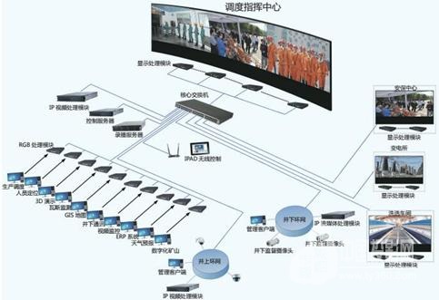 Voury卓华能源系统解决方案的大屏应用特点表现为高分辨率、跨平台显示,大屏幕系统需要实现设备运作状况与实时信息、设备位置、地理分布等功能的直观显示,能够直接显示调度系统、管理系统、地理信息系统及GPS定位系统等应用信息,并对系统的运行状态进行显示,帮助调度员了解和掌握智能服务管理系统的运行状态,保证系统运行的安全。Voury卓华LED大屏幕显示系统利用强大的显示处理功能实现对矿山人员定位图、瓦斯监测数据图、巷道分布图的高清显示,对接入的井上井下监控摄像头实时采集显示,对井上风机远程监控、井下瓦斯联网监控、温度与压力监测设备等大量实时信号进行显示。利用矿井监控系统和先进的光纤联络方式实现市、县、矿三级联网管理和矿区监控中心控制管理,整合调度中心、变电站、洗选车间、安保中心等相关业务部门协同显示,形成一个综合显示平台。