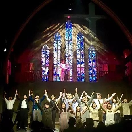 演出场地新天安堂是一座拥有132年历史的教堂,展演空间400多平方米,并在东、西、南、北四个方向均设置表演区域,在北、东、西舞台打造纱幕投影,南面的舞台则以LED为主,三块纱幕投影画面联动投影,将观演区整个包围在舞台中间,为观众打造了多维空间的观演体验 。同时,演出场地的座椅为360°可旋转座椅,最大限度的为观众创造时空穿梭的观影效果。