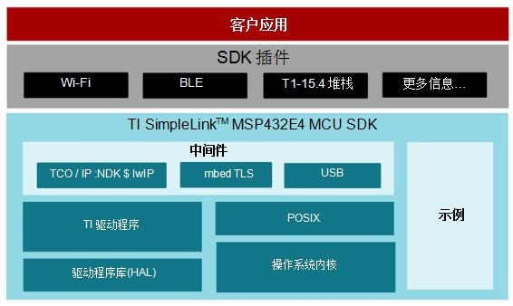SimpleLink MSP432E4 MCU如图2所示,它集成了包括USB等行业标准、控制器区域网络(CAN)和20多个串行接口在内的大量有线接口,帮助您把多种有线传感器和执行器连接到网关。通过充分利用SimpleLink无线MCU和SimpleLink软件开发工具包(SDK)插件程序将无线连接性添加到智能网关,日益增多的无线连接选项能够为这些接口提供良好的补充(如Wi-Fi、低功耗蓝牙和Sub-1 GHz 802.15.4等)。