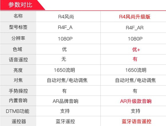 为了给消费者考虑R4风尚升级版值得买的“诱因”,我们贴出了这么一张参数对比图。话不多说,以下是R4风尚和R4风尚升级款参数对比。