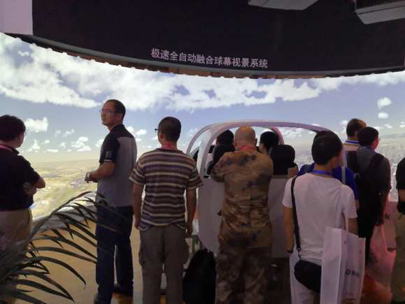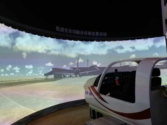 本次成都IFC展会上,国画升级了飞行模拟方案,以三台高流明双色激光工程投影机LP100ULA投射半径为3.25米的球幕,配合小鹰500座舱,给观众带来更逼真的模拟飞行体验。该方案中的球幕视景系统应用了 “极速全自动融合”技术,可一键全自动恢复投影图像几何校正边缘融合,每通道只需5-8秒,是目前速度最快、精度最高的全自动校正系统,免除因融合偏移导致投影画面质量大幅下降、花费大量人力重调融合的困扰。