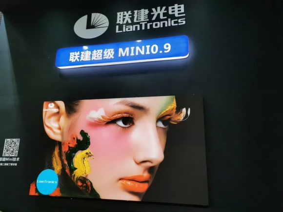 展位另一侧,由联建光电打造的Mini0.9系列同样惊艳,该款产品采用多合一阵列化封装方式,突破传统SMD大单灯封装尺寸限制,轻松实现1.0mm以下点间距,为现场观众带来一场超高清视觉盛宴。