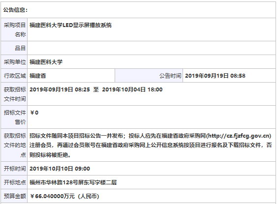 采购项目名称: 福建医科大学LED显示屏播放系统