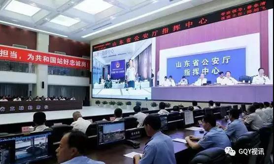 由GQY视讯承建的山东省公安厅指挥中心大屏幕显示系统由109.35㎡点间距P1.2的小间距拼接屏组成,不但可满足指挥中心日常监控、可视指挥、综合控制等需求,同时还满足会议等功能需求。