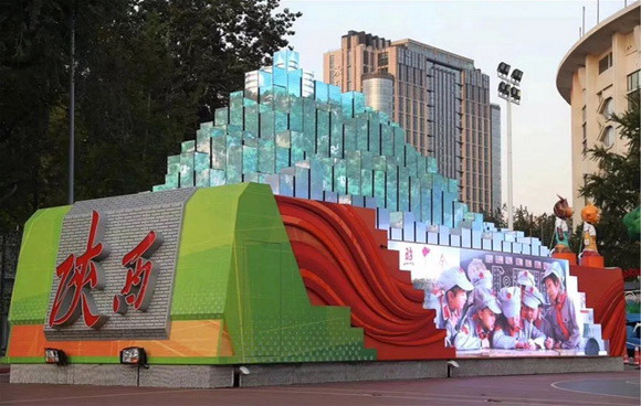 行进中的陕西彩车实现了秦岭、宝塔山和现代城市的造型变化,充分展示陕西生态文化、历史文化、红色文化、科技文化、创新文化。利亚德为彩车打造的237.5平米LED显示屏,让全世界看到了一个新陕西。