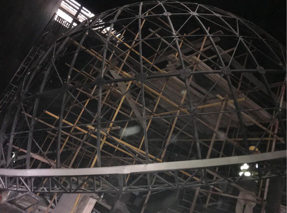 整体穹顶-球幕采用钢结构框架结构,整体为多边形框架无焊接式的螺丝组装,保证整个球幕的受力、拉力均匀,控制整体不会发生变形。。
