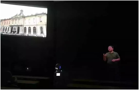 这是北京仓丰科技协助联通建立的北京高校第一家5G全息直播课堂,通过对传统的教室环境进行多媒体改造,基于全息材料和全息影像,进行的虚拟场景与真实场景的叠加,实现远程老师和现场学生的实时互动。