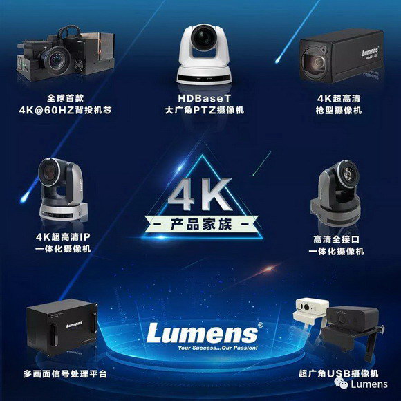 Lumens一直致力于高端视频产品的研发和生产,自主研发生产的高清实物展台、背投DLP机芯、高清会议摄像机、智慧录播一体机等产品成功营销全球40多个国家,每个产品线市场占有率皆位居世界前3之列,即将推出的多画面信号处理平台,将构建起Lumens完整视频产品生态圈!发布会现场,Lumens将集中发布4K产品族群,以满足不同应用方案的具体需求。