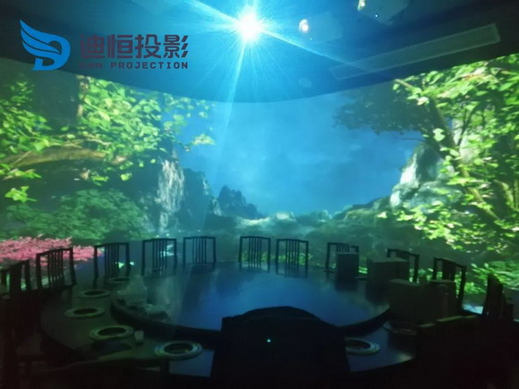 项目详情:该项目是莱西花好月圆火锅店的项目,通过使用DW370ST与DM907所做的沉浸式与环幕投影;该项目共分为两个部分,第一部分为使用两台DM907拼接而成的大屏,配合桃花源的装修场景构造一个世外桃源的感觉。第二部分为包房,主题为花好月圆光影包间,用了8台DW370ST构造了一个环幕场景,给人以沉浸式体验。全新的视角不一样的风格应用,各种特效影像在身边绽放,带来一种全新的奇特的体验。