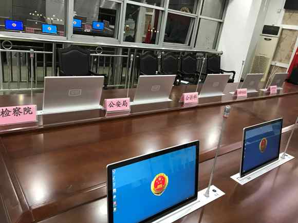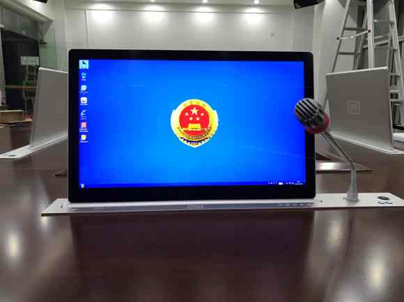 配置的高清超薄液晶触控屏,单屏带话筒一键或独立升降控制,嵌入式安装方式,使整个会议室看起来整洁、美观。