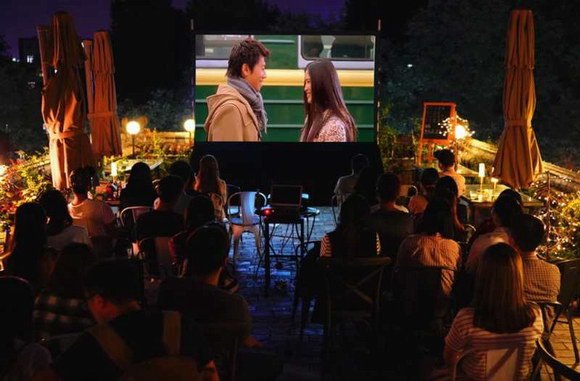 图一:北京电影节朋友相聚通过Vivitek(丽讯)H658F欣赏精彩电影