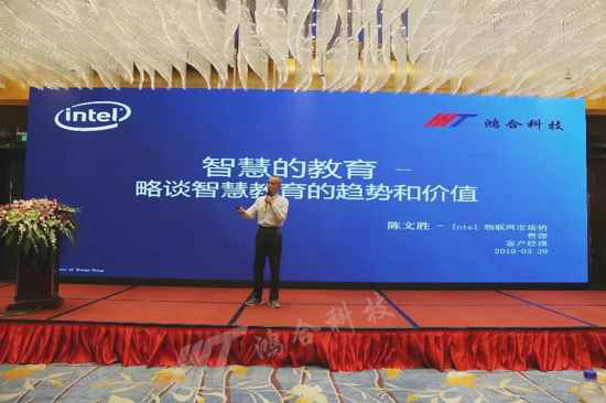 作为鸿合科技多年友好战略合作伙伴,Intel一直为鸿合提供着技术及资源支持。大会现场,Intel物联网市场销售部客户经理陈文胜针对当代智慧教育的趋势和价值进行了详细解读。并在现场发言表示:“Intel和鸿合不断进步的背后离不开在坐并肩作战合作伙伴的支持与信任。未来,Intel与鸿合将继续强强联手,与众多合作伙伴们互惠共赢,共同助力中国智慧教育行业发展。”