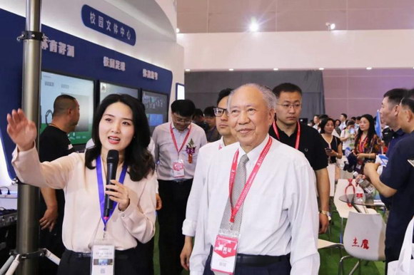 ▲第十届全国人大常委会委员、原国家教育委员会副主任、教育部原总督学柳斌莅临锐取展位参观指导