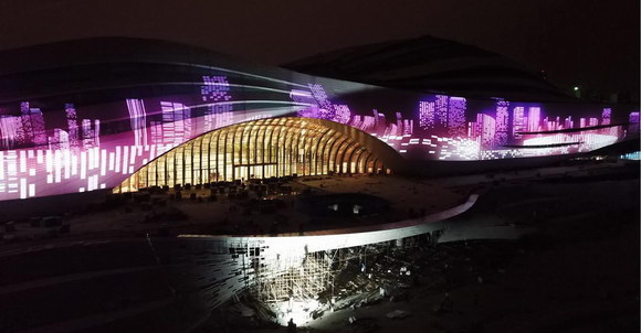 而丝路中心的灯光秀也包含心血。今年的投影主题就有一个好听的名字:“云动翼深情”,这个浪漫的主题取自诗经·尔雅中的诗词“风澜云动”。“云动”即是借喻建筑外观“流动白云”的特点,通过画面演绎展现“流云”对脚下这片土地最深沉、最厚重的挚爱。无论“流云”飘荡在何处,心就在这里,根就在这里。同时,翼也是河北的简称,诠释了对河北美好的期望与愿景。