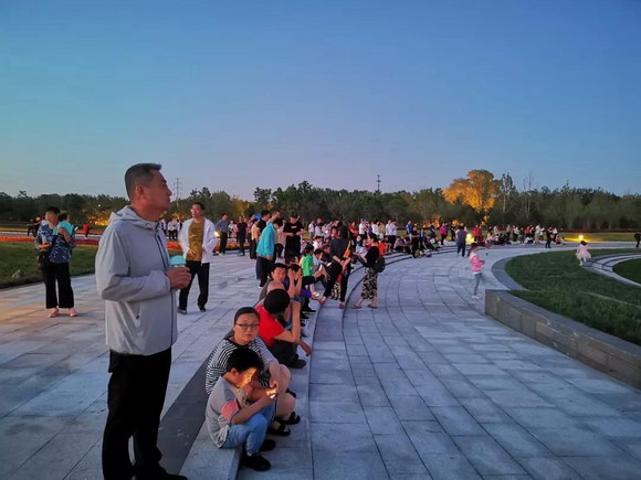 可以看到天还没黑,丝绸之路国际文化交流中心前的广场上就已经聚满了人,大家都在等待着惊艳的一刻。