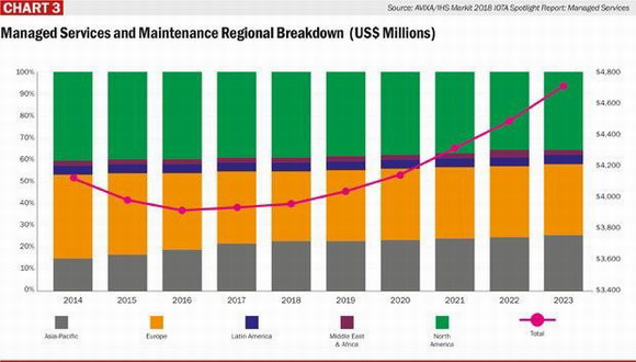 AV中的托管服务传统形式是监控和维护合同。如今,托管服务已经扩展到包括存储和视频处理功能的外包,以及服务台支持甚至系统操作。据IOTA称,视听服务托管的全球市场预计将从2018年的39.5亿美元增长到2023年的47亿美元,复合年增长率为3.6%。